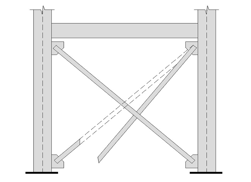 Rotura de arriostramiento con triangulaciones para resistir las fuerzas horizontales, por esfuerzos importantes de flexión y cortante debido a la esbeltez