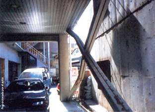 Deformaciones de arriostramiento con triangulaciones para resistir las fuerzas horizontales, por esfuerzos importantes de flexión y cortante debido a la esbeltez
