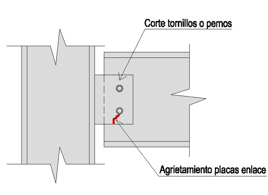 LOCALIZACIÓNSÍNTOMACAUSA DEL DAÑOCÓDIGOPlaca de apoyo y tornillos o pernosAgrietamiento y corteEsfuerzos importantes de flexión y cortante debido a esbeltezAV_01Apoyo de la vigaPérdida de apoyoEsfuerzos importantes de flexión y cortante debido a esbeltezAV_02