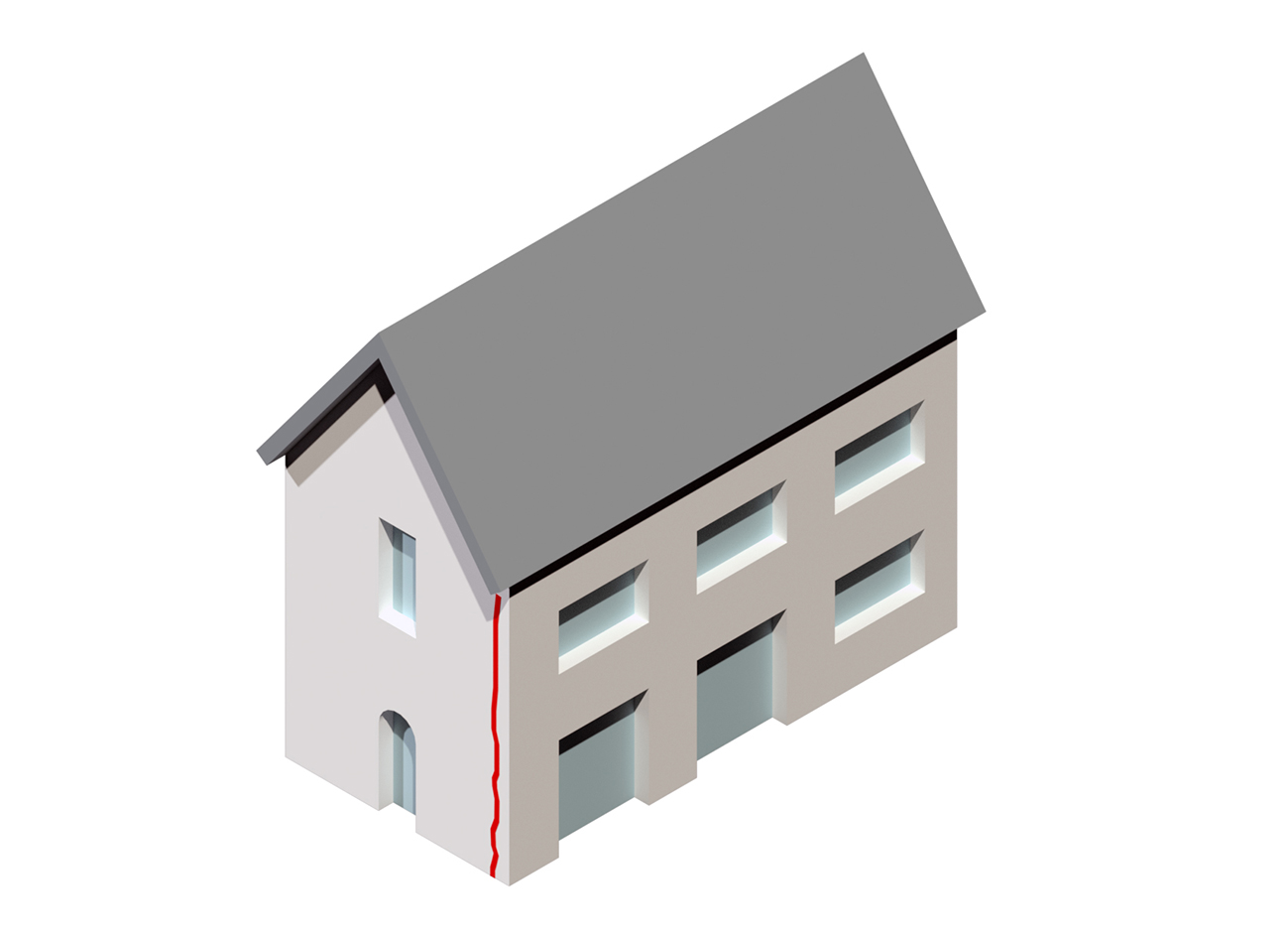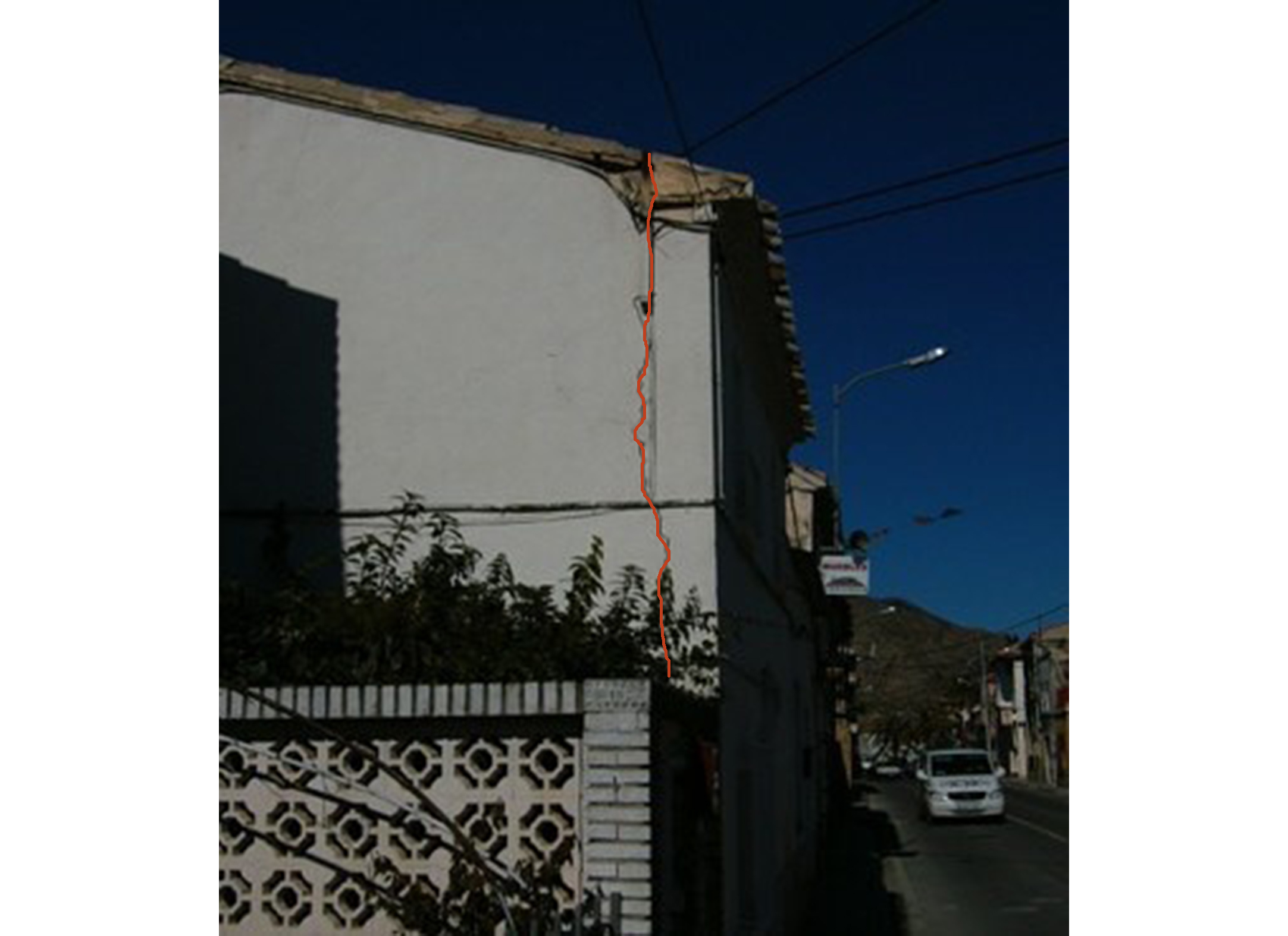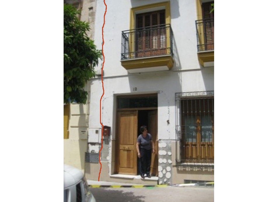 Fisuras verticales y/o roturas que marca la junta entre muros de fachadas y medianeros. Muchas veces puede atravesar el espesor del muro