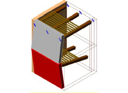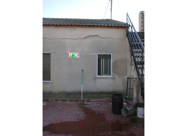Este mecanismo se produce por desconexión con el forjado intermedio cuando la conexión en la base y superior es eficaz. Se puede producir el colapso total o parcial del muro.