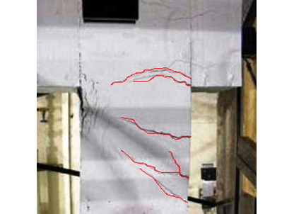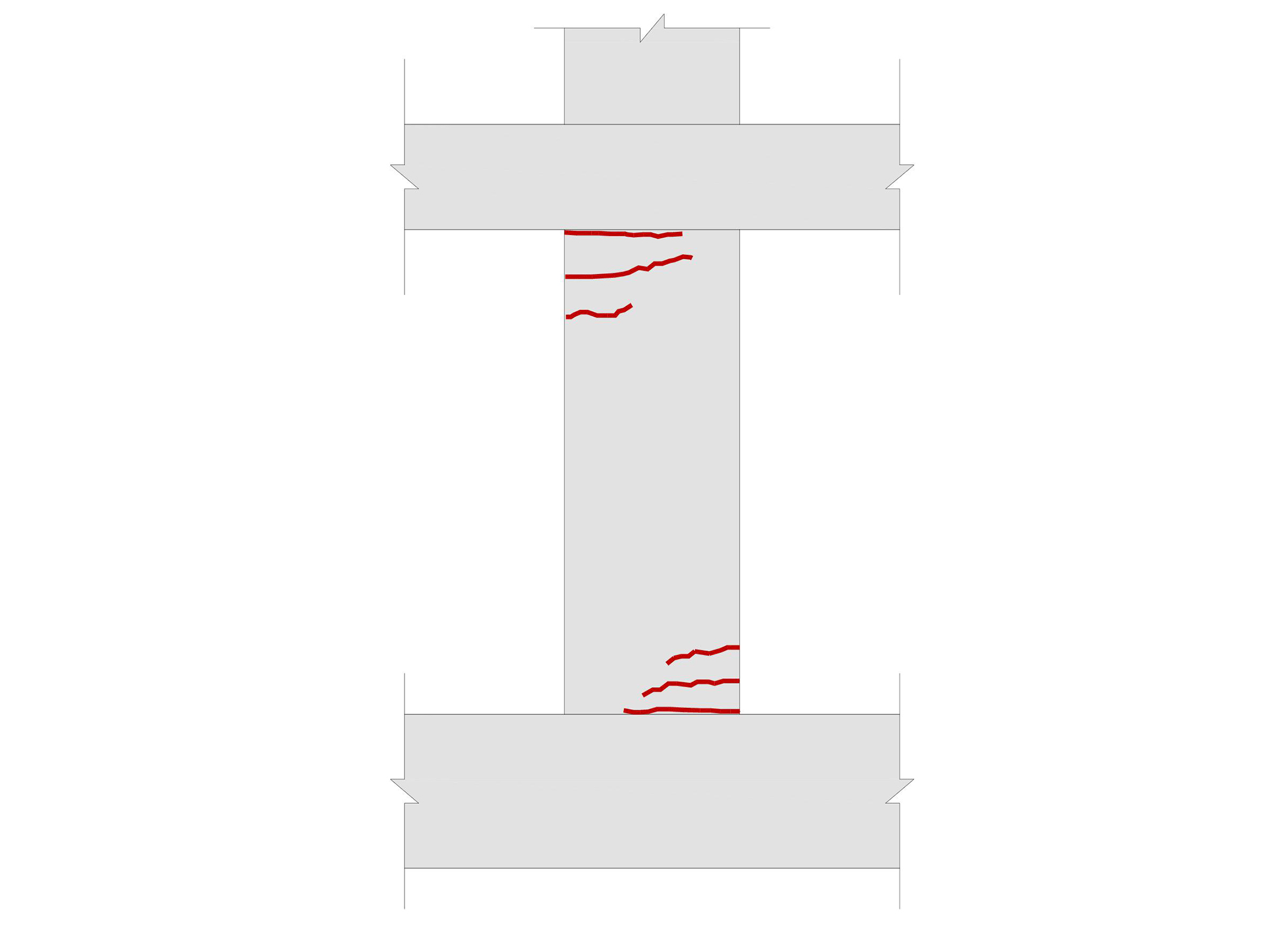 Fisuras horizontales y/o rotura concentrándose especialmente en los extremos de los pilares, por el incremento de la flexión en la cabeza y apoyo, producido por las fuerzas sísmicas.