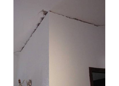Fisuras horizontales en la parte superior de particiones verticales por falta de unión entre tabique y techo.