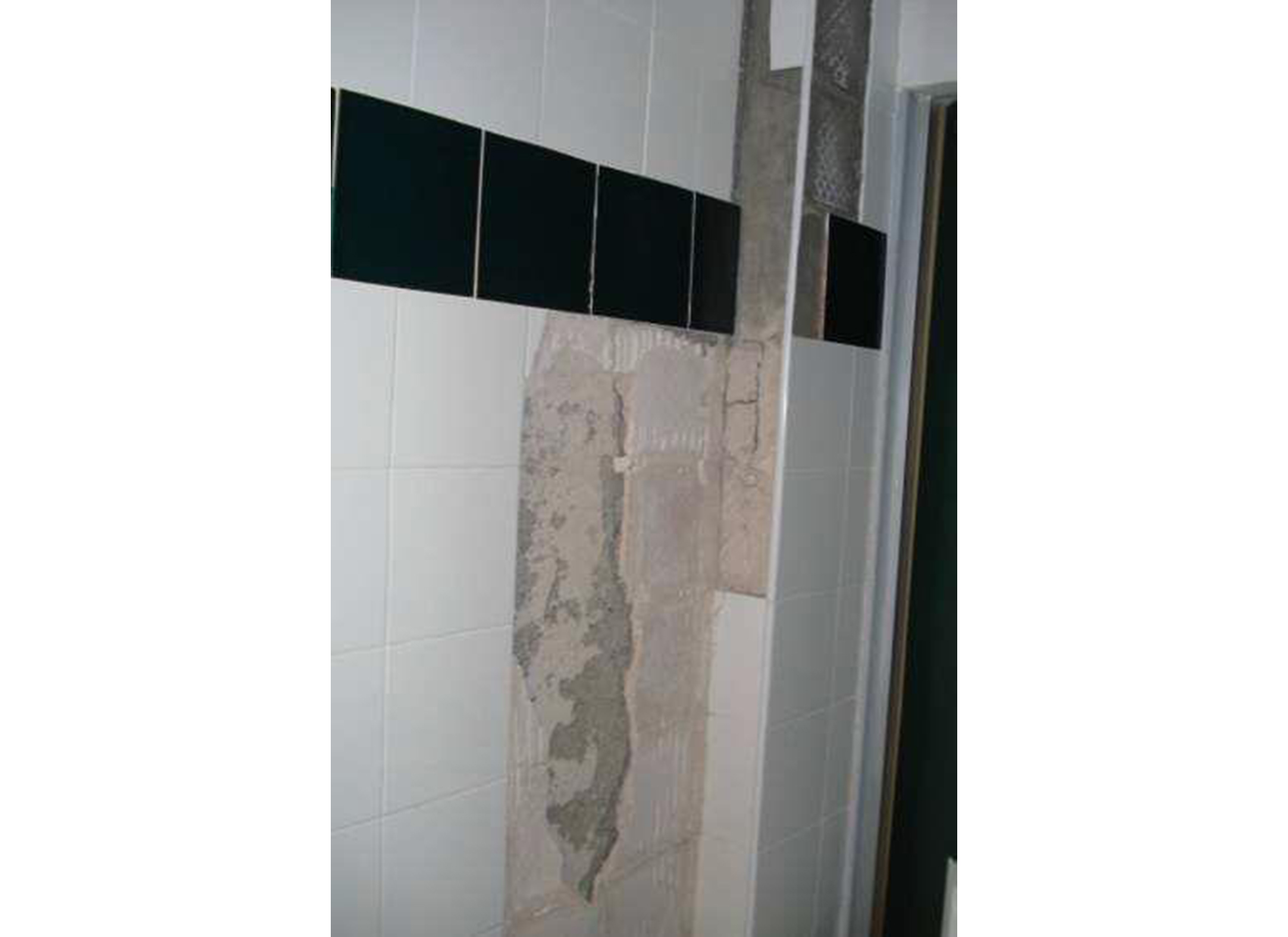 Fisuración, rotura y o desprendimientos de acabados continuos y discontinuos de particiones verticales por roturas de anclajes y/o pérdida de adherencia del material de agarre.